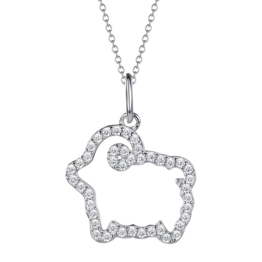 Goat- White Golden Plated Silver Zodiac Animal Pendant.
