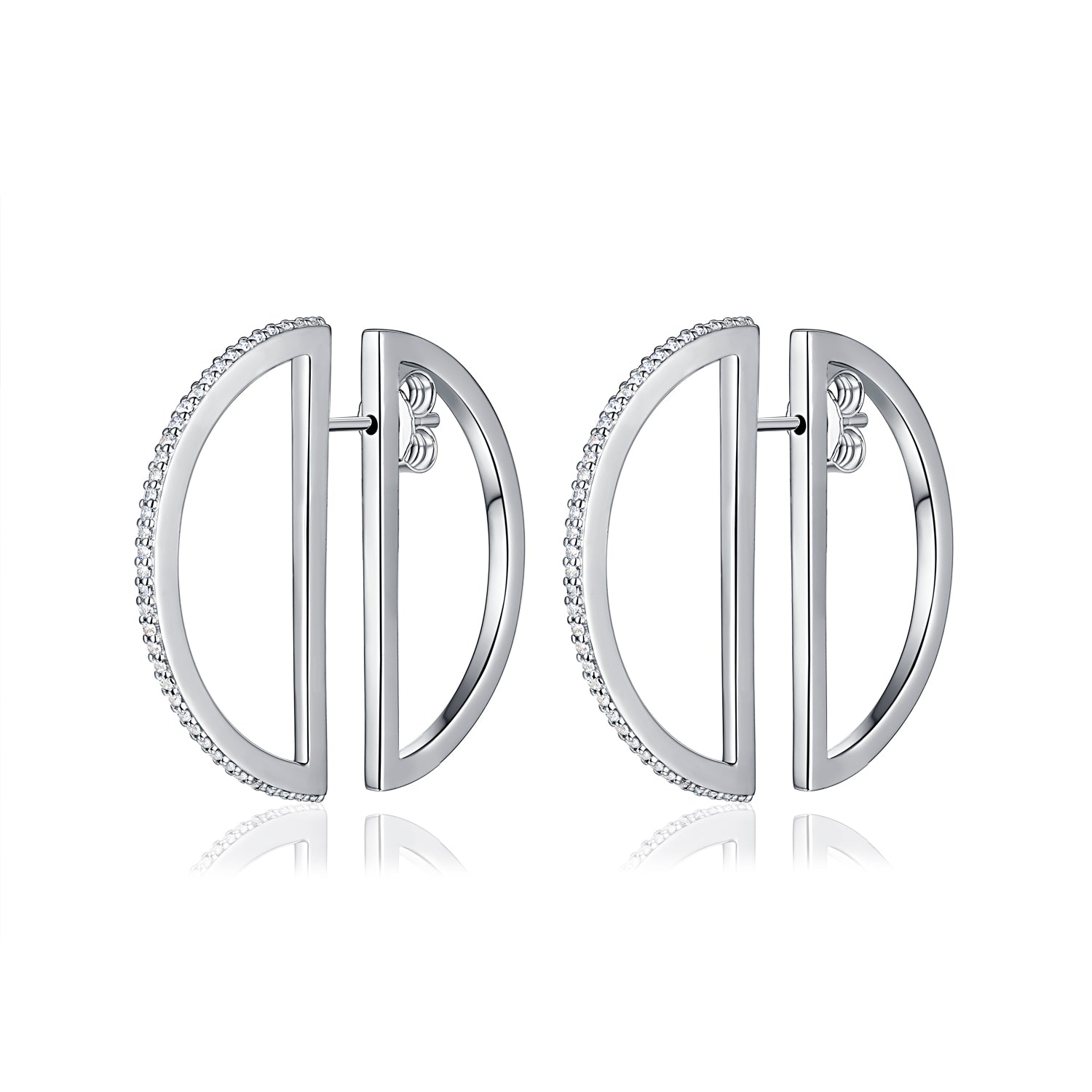 Modern and eye-catching stud earrings crafted with 925 sterling silver (available in yellow gold, rose gold, or white gold plating), merging sleek geometry with sparkling detail:
