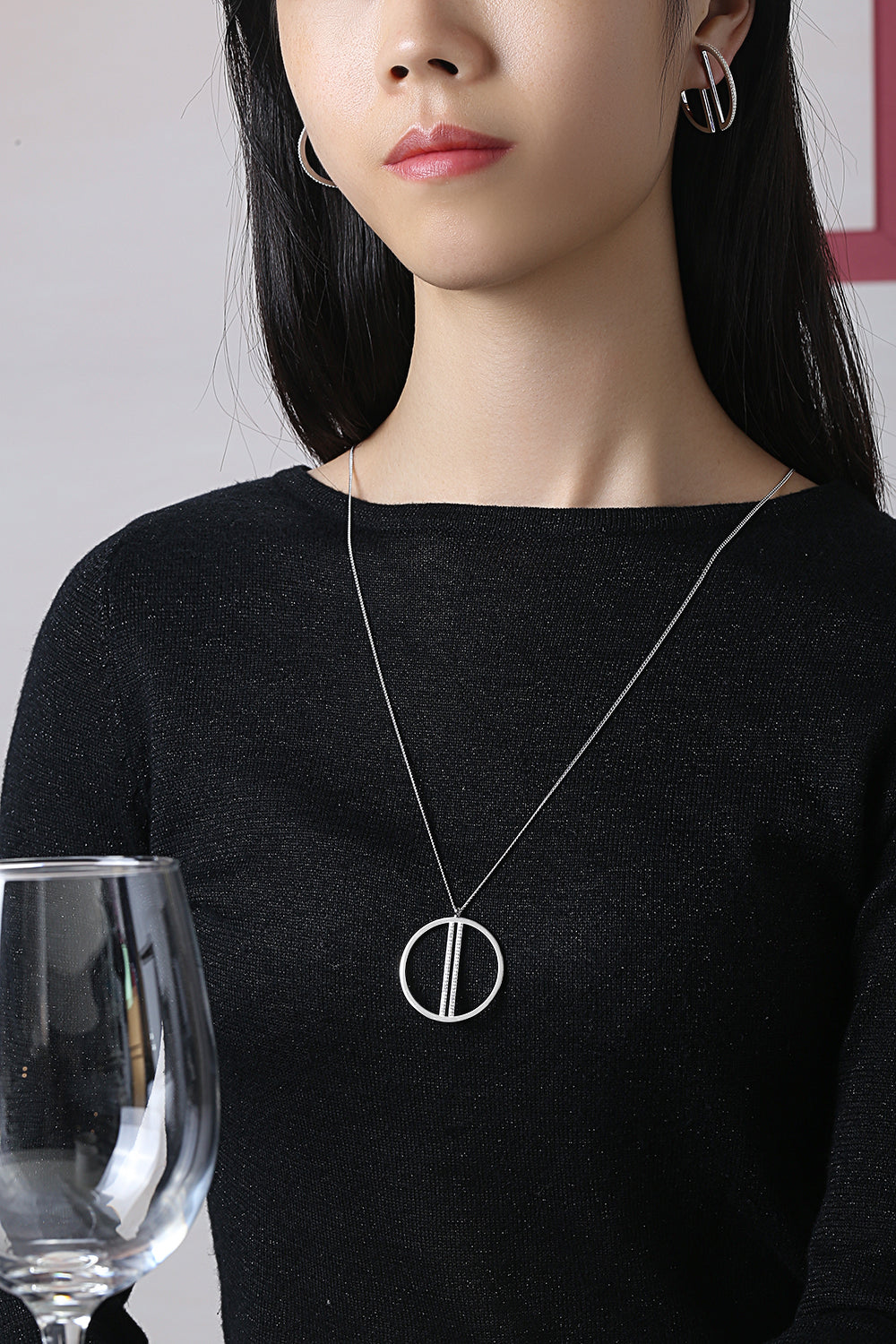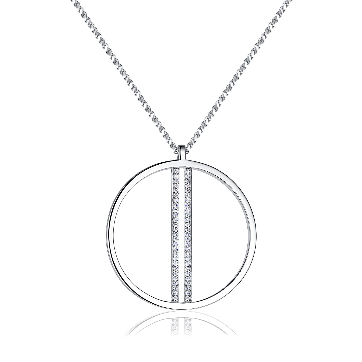 - Design: Open-circle pendant with dual zirconia-studded bars – clean, architectural lines bring understated modern luxury