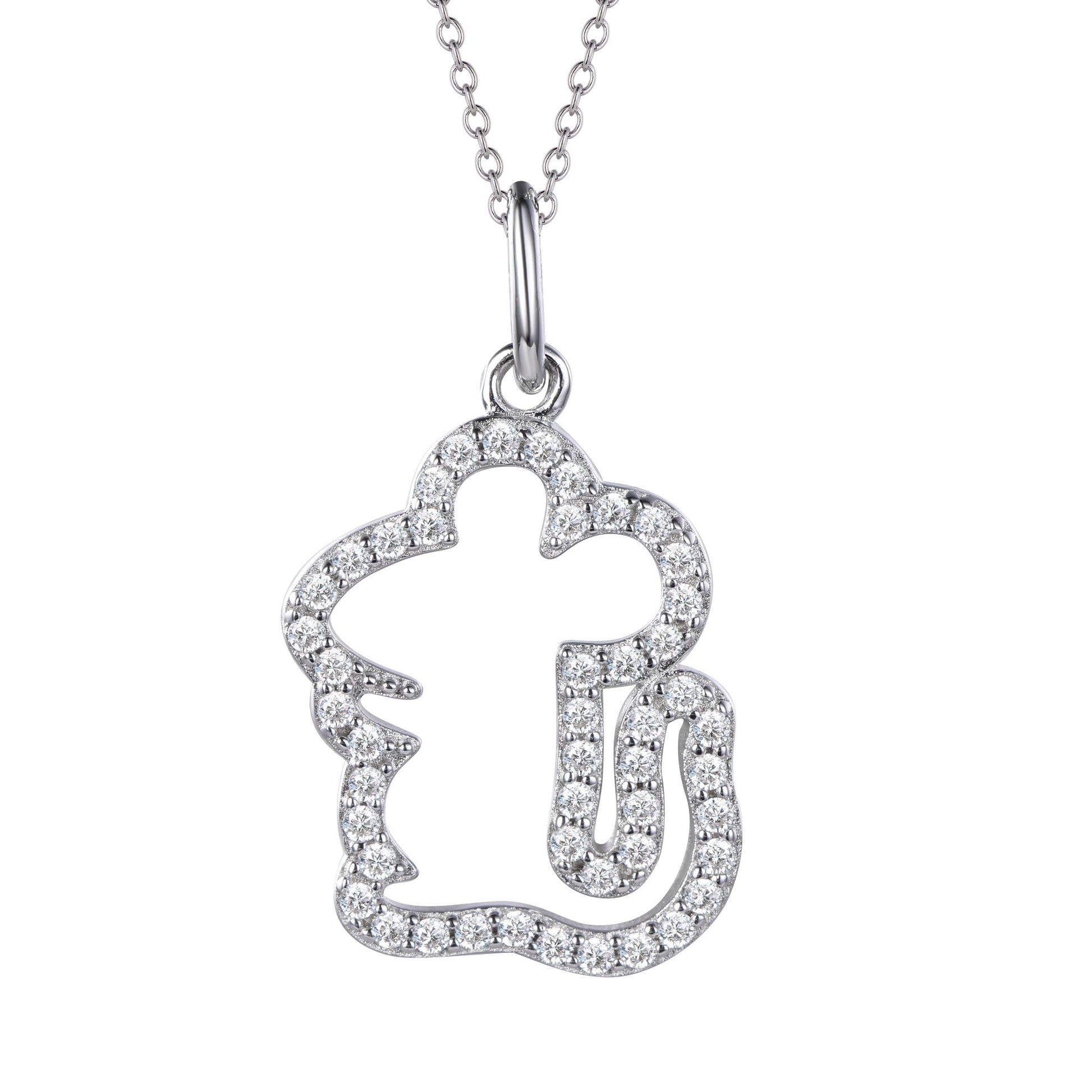 A sleek silver pendant with a zirconia-encrusted zodiac outline.
