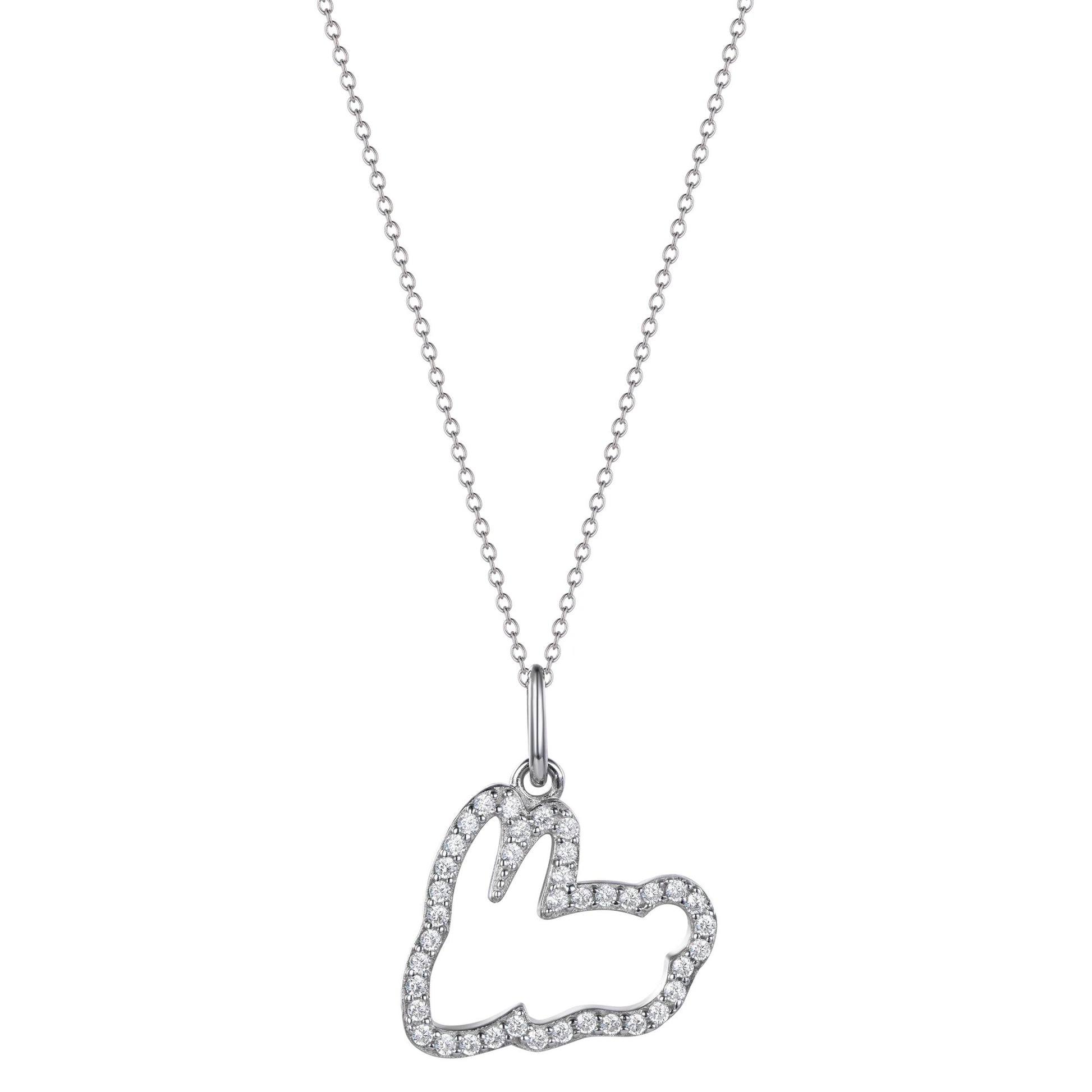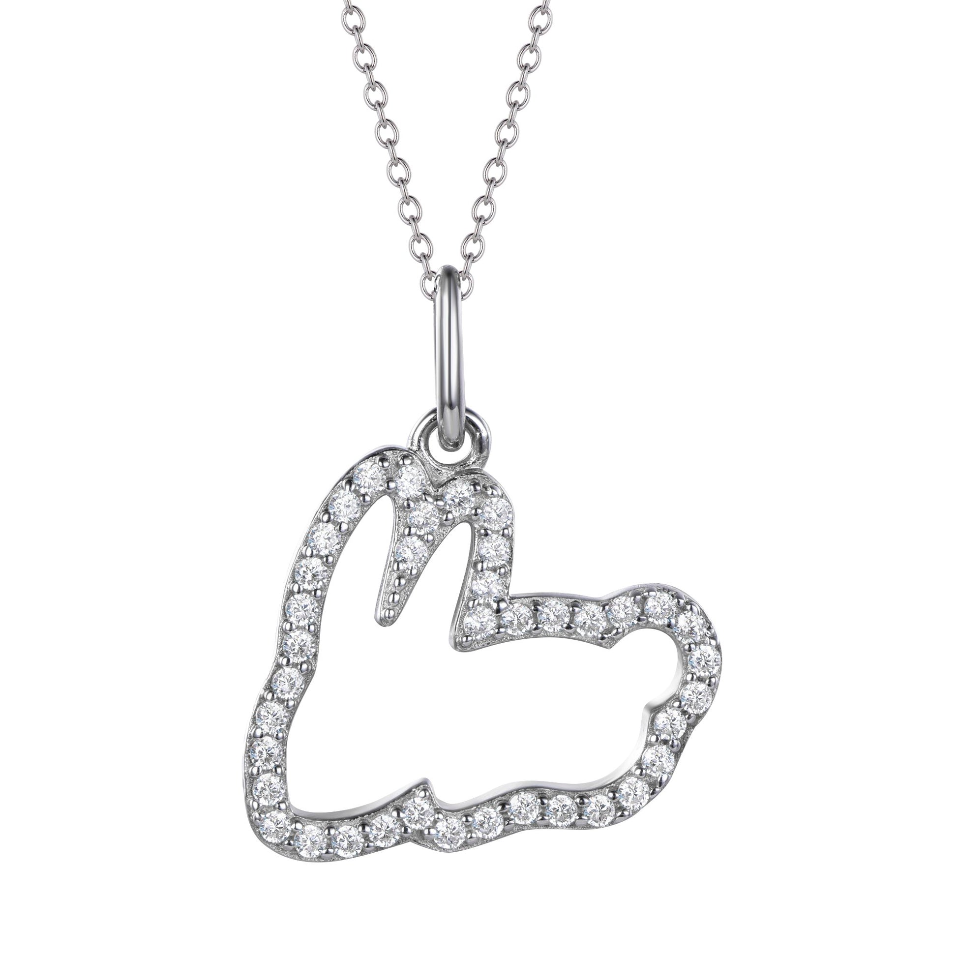 Rabbit: Delicate silver rabbit silhouette pendant, sprinkled with glittering zirconia. An adorable and gentle token of luck, made with lasting waterproof plating for day-to-day elegance.