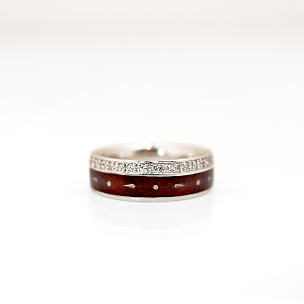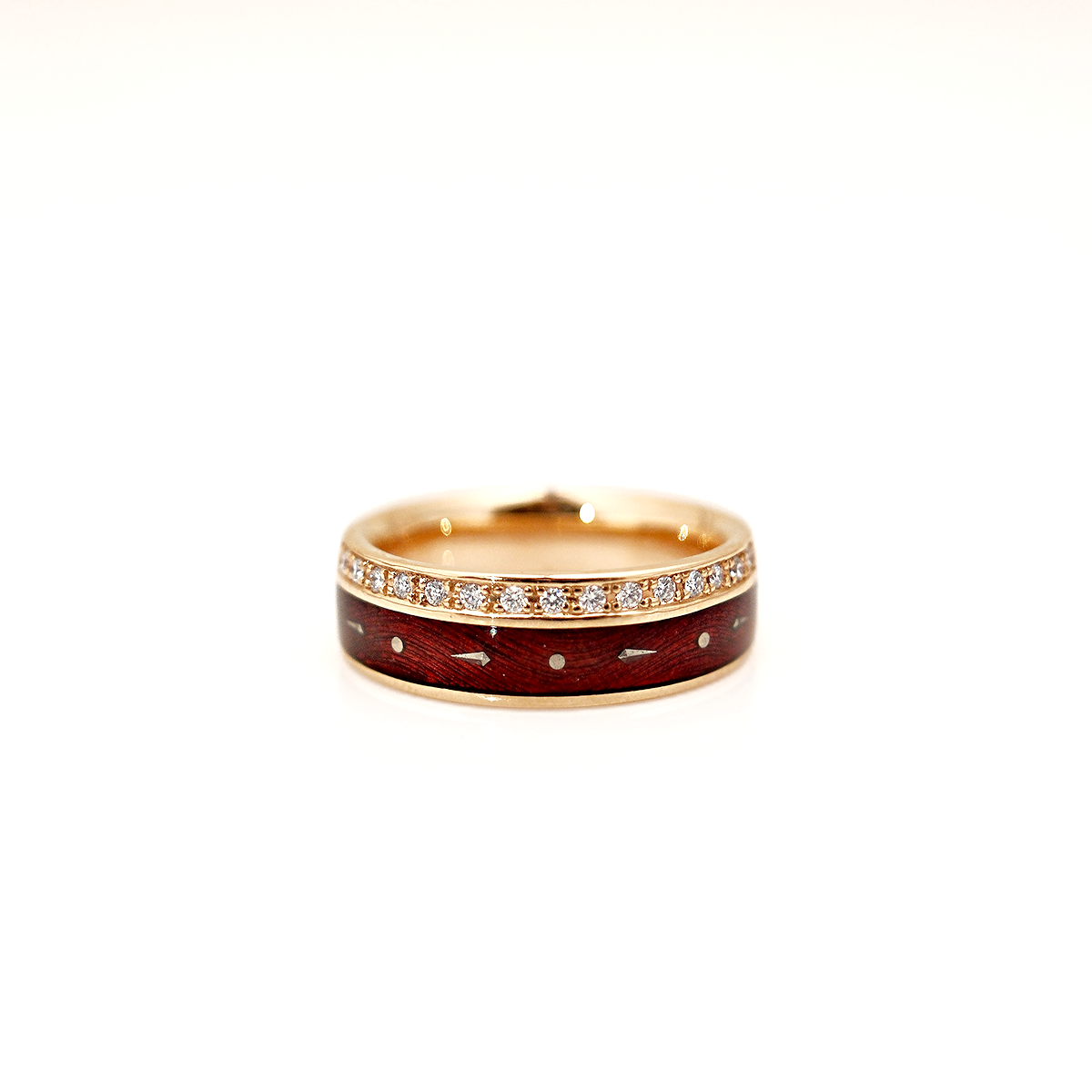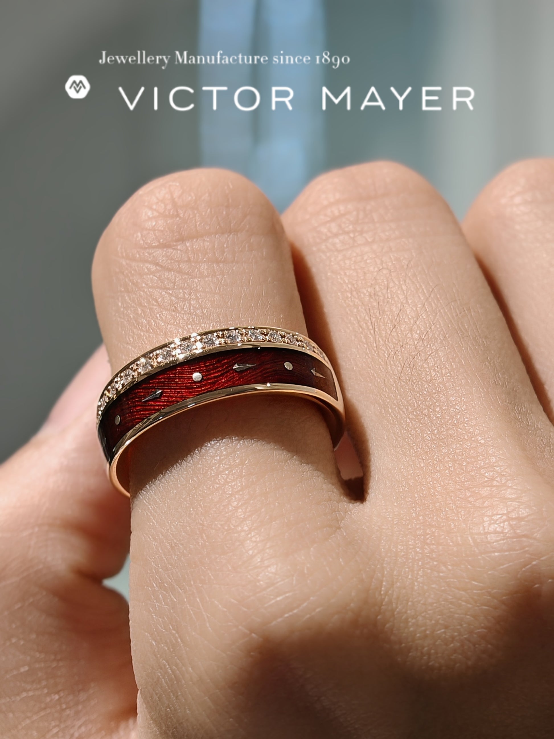 Victor Mayer Red Enamel Ring in 18k White Gold with Diamonds Ring, 18k WG/YG, vitreous enamel, 51 diamonds total 1.20 ct, G VS brilliant cut