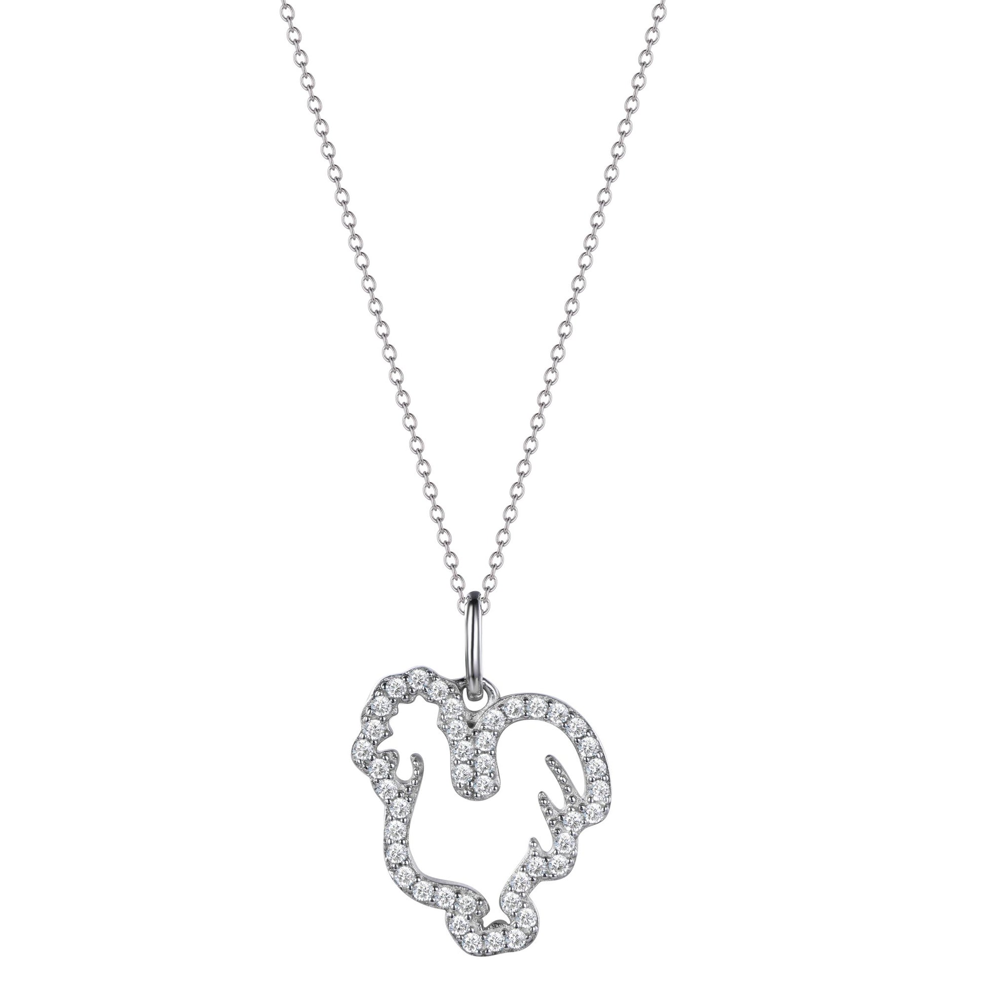 Proud silver rooster outline pendant, adorned with gleaming zirconia. A confident symbol of dawn and faithfulness, designed for lasting, waterproof daily wear.