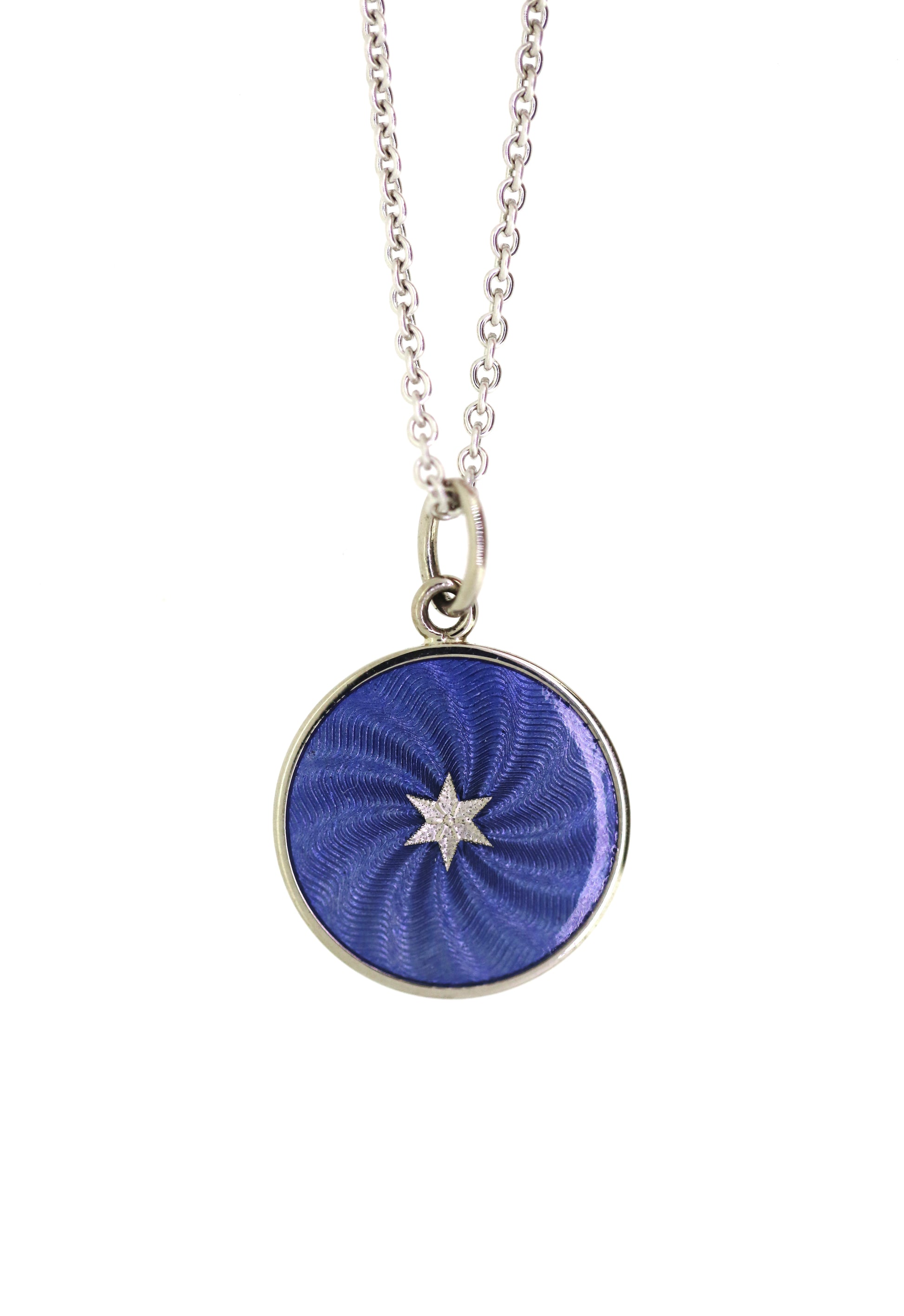 Round disk pendant 18k yellow/white gold, Diskos Collection, translucent vitreous enamel, guilloche, gold paillons, diameter app. 15.0 mm