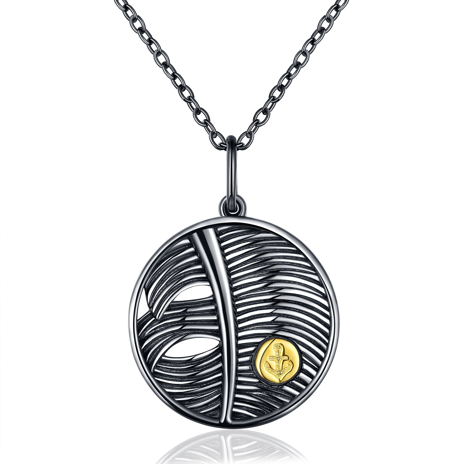 - Crafted from 925 sterling silver (fine texture & anti-oxidation), the round pendant features sleek, interwoven feather patterns for an artistic touch, plus a tiny gold accent that adds subtle sophistication.