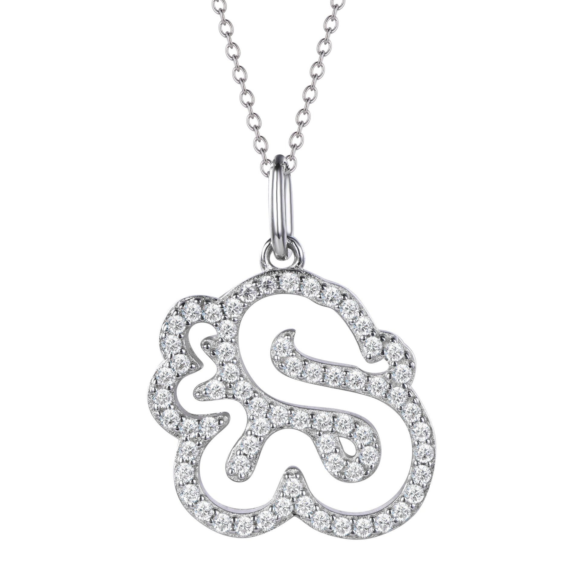 Snake: Curved silver snake outline pendant, embellished with shimmering zirconia. A sleek and wise design symbolizing renewal, featuring durable waterproof coating for everyday wear.