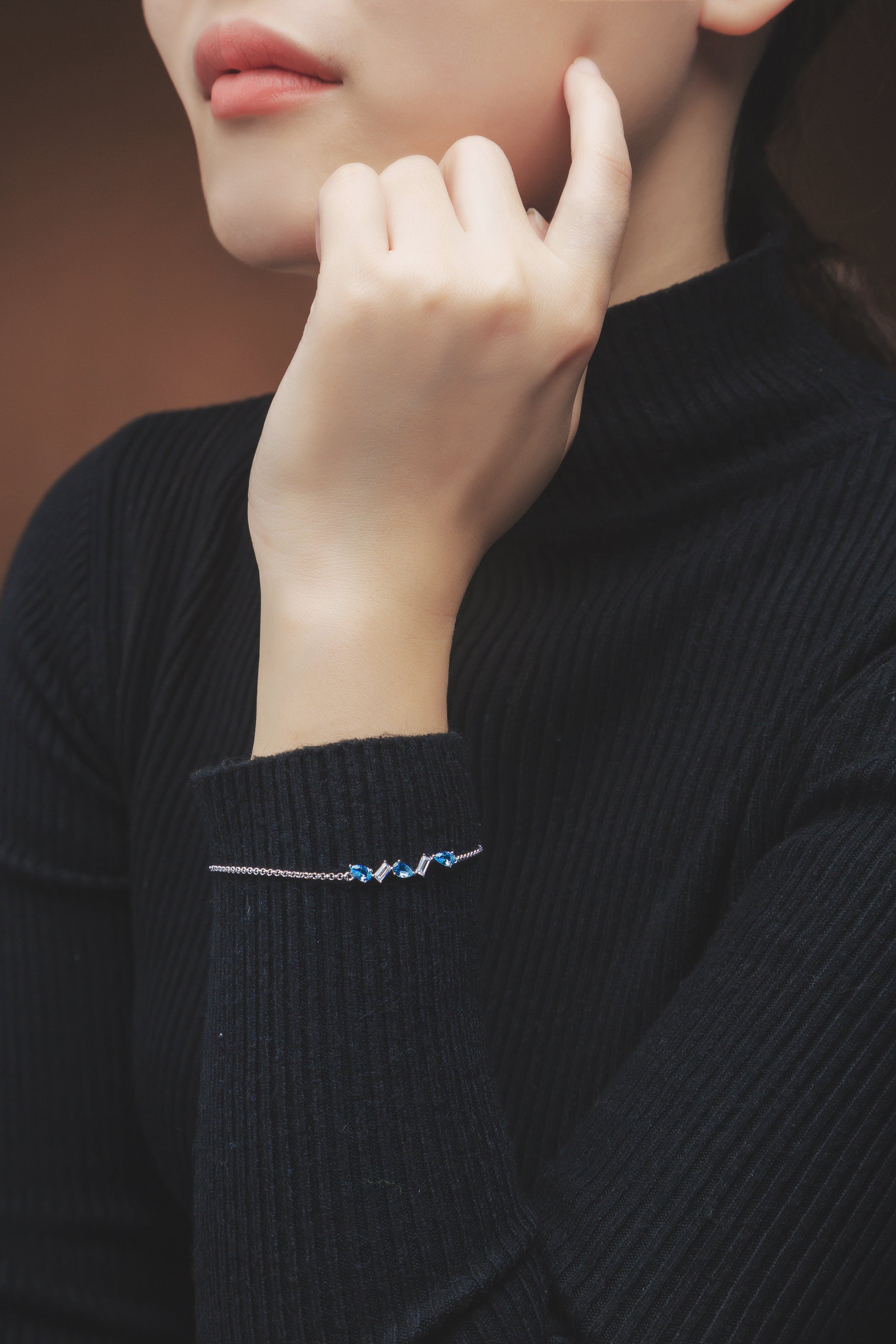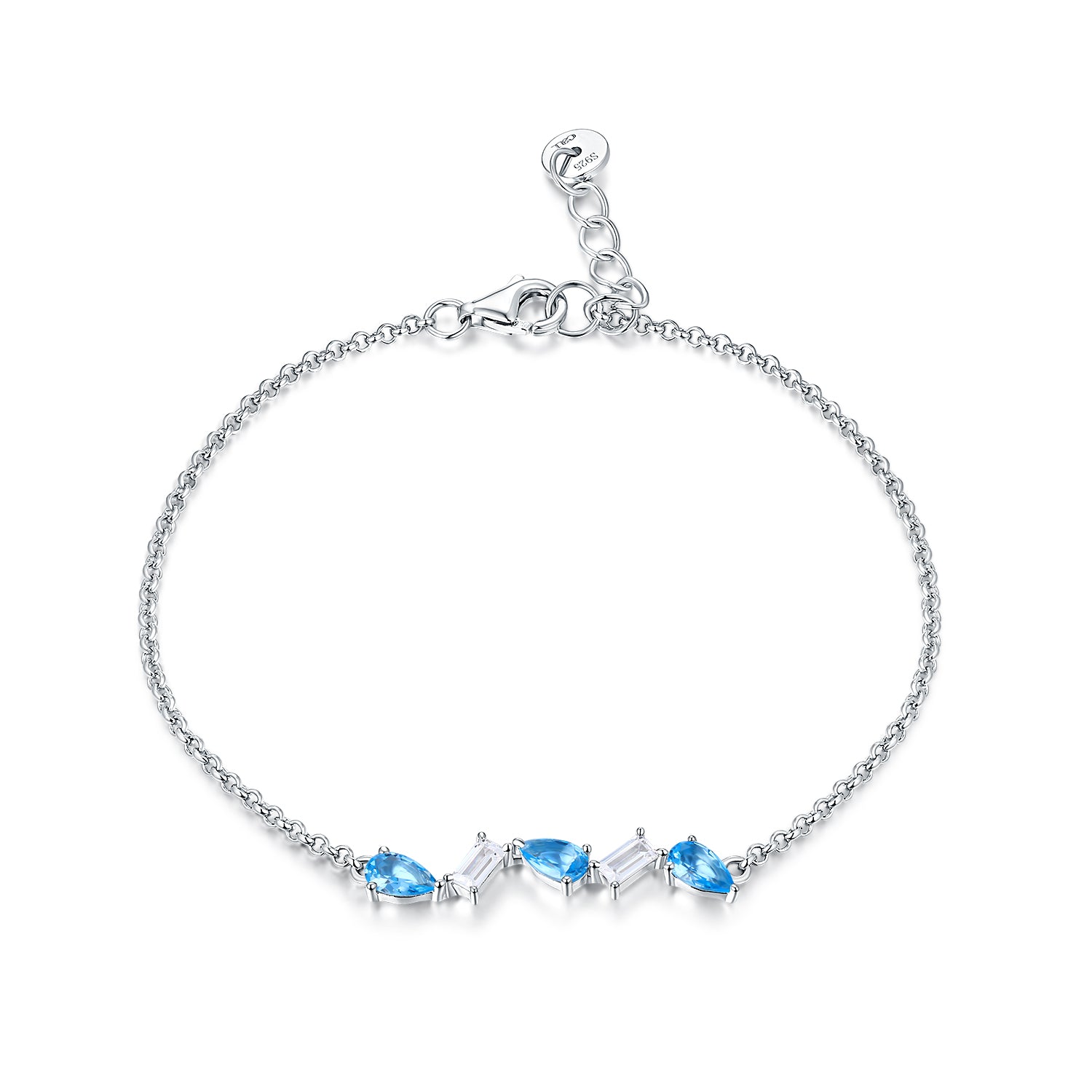 Crafted from premium 925 sterling silver with a sleek rhodium-plated (white gold finish) surface, the bracelet delivers a bright, mirror-like luster that resists tarnishing and exudes modern elegance. It features an adjustable chain (16cm + 2cm extender) for a perfect, comfortable fit on any wrist size, adorned with a striking arrangement of marquise-cut blue cubic zirconia and baguette-cut white cubic zirconia—mimicking the trail of a comet and casting a brilliant play of light with every movement.